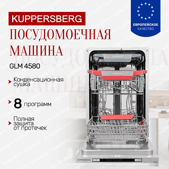 Встраиваемая посудомоечная машина Kuppersberg GLM 4580 вместимостью в 11 комплектов идеально подойдет для семьи из 4 человек. Потребление 8 л воды за цикл делает модель экономичной в эксплуатации. За счет своих небольших габаритов она не займет у вас много места, его размеры составляют: высота — 81,5см, ширина — 44,8 см, глубина — 52 см. Классификация по уровню энергопотребления дает объективное представление о том, насколько эффективно устройство расходует данный ресурс. Класс А++ — более рационально расходует электроэнергию, по сравнению с классом А+ и А.