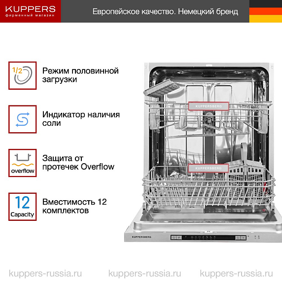 Торговая марка Kuppersberg уже 15 лет находится на рынке и входит в ТОП-10 производителей бытовой техники в России. По всему миру расположено более десяти заводов компании Куперсберг, на которых собирается техника. Изначально эта немецкая фирма не имела собственных заводов, поэтому обращалась к контрактным заводам на территории Европы, которым можно было бы доверить выпуск и сборку. За всеми этапами следили инженеры компании. Сейчас компания расширяется и запустила производство посудомоечных машин в родной стране — Германии. При этом цена осталась на прежнем уровне. Новые модели отличаются высоким классом энергоэффективности и защитой от протечек.