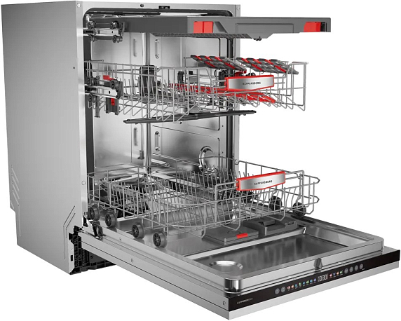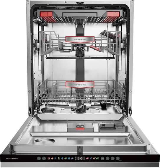 Встраиваемая посудомоечная машина Kuppersberg GHL 6031 представляет собой современное решение для эффективной и комфортной уборки посуды в домашних условиях. Благодаря элегантному белому цвету панели управления и лаконичному дизайну из коллекции «Современный дизайн», устройство гармонично впишется в интерьер любой кухни, придавая ей стильный и аккуратный вид. Компактные габариты (высота 82 см, ширина 59.8 см, глубина 56 см) позволяют легко встроить технику в нишу стандартного размера (82.2-88.2 х 60 х 58.1 см), что делает ее идеальным выбором для тех, кто ценит эргономику и удобство. Внутреннее пространство выполнено из нержавеющей стали, что гарантирует долговечность и устойчивость к коррозии. Две вместительные корзины обеспечивают возможность загрузки до 16 комплектов посуды, что особенно удобно для больших семей или при проведении праздничных мероприятий. Верхний лоток предназначен для столовых приборов, рационально используя площадь и обеспечивая качественную очистку каждого предмета. Внутренняя LED-подсветка облегчает процесс загрузки и выгрузки, позволяя видеть содержимое камеры даже при недостаточном освещении.