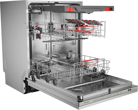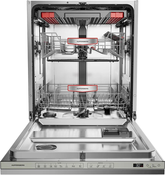 Встраиваемая посудомоечная машина Kuppersberg GHS 6036 представляет собой идеальное сочетание современного дизайна и функциональности, разработанное для тех, кто ценит комфорт и качество в бытовой технике. Выполненная в элегантном белом цвете панели управления, она гармонично впишется в любой интерьер кухни, подчеркивая его стиль и аккуратность. Высота техники составляет 82 см, ширина – 59,8 см, а глубина – 56 см, что позволяет легко встроить её в нишу стандартных размеров 82.2-88.2 х 60 х 58.1 см, обеспечивая при этом удобство эксплуатации и сохранение пространства. Внутренняя рабочая камера изготовлена из высококачественной нержавеющей стали, что гарантирует долговечность и устойчивость к коррозии, а также обеспечивает гигиеничность и простоту ухода. Два вместительных короба позволяют разместить до 16 комплектов посуды, что делает эту модель отличным решением для больших семей или активных хозяек, предпочитающих экономить время на мытье посуды. Внутренняя LED-подсветка добавляет удобства при загрузке и выгрузке, освещая пространство внутри камеры и позволяя контролировать процесс без дополнительного освещения.