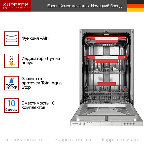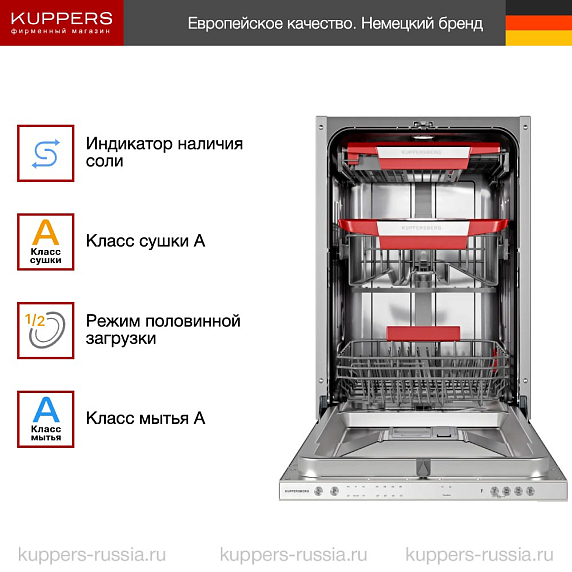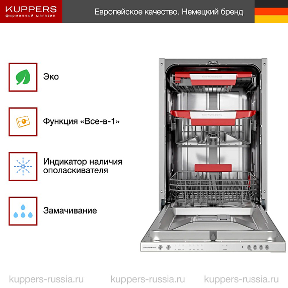 Благодаря встроенному звуковому сигналу вы всегда будете знать, когда прибор закончит свой цикл работы. Это экономит ваше время, чтобы самостоятельно не следить за прекращением его функционирования. Рабочий цикл посудомоечной машины Купперсберг GIM 6092 заканчивается ополаскиванием горячей водой, которая потом испаряется с поверхности посуды и конденсируется на прохладных стенках оборудования. Затем она каплями стекает в специальный резервуар. Техника оснащена специальной индикацией "луч на полу, она подскажет когда устройство завершит цикл мытья.
