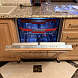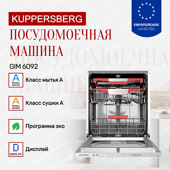 Встраиваемая посудомоечная машина Kuppersberg GIM 6092 полностью монтируется в нишу и закрывается мебельным фасадом. Модель обладает панелью управления в черном цвете и имеет следующие габариты: высота — 81,5 см, ширина — 59,8 см, глубина — 55 см. Она рассчитана на 15 стандартных комплектов, в которые входят тарелки, чашки и приборы, а если вам нужно будет положить кастрюлю, противень или подобные крупные предметы, общий объем загрузки уменьшится.