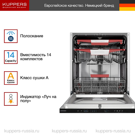 Торговая марка Kuppersberg уже 15 лет находится на рынке и входит в ТОП-10 производителей бытовой техники в России. По всему миру расположено более десяти заводов компании Куперсберг, на которых собирается техника. Изначально эта немецкая фирма не имела собственных заводов, поэтому обращалась к контрактным заводам на территории Европы, которым можно было бы доверить выпуск и сборку. За всеми этапами следили инженеры компании. Сейчас компания расширяется и запустила производство посудомоечных машин в родной стране — Германии. При этом цена осталась на прежнем уровне. Новые модели отличаются высоким классом энергоэффективности и защитой от протечек.