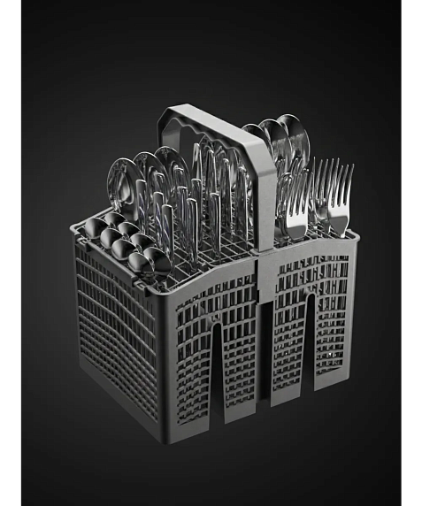 Рабочая камера выполнена из нержавеющей стали, что гарантирует долговечность и стойкость к коррозии, а также облегчает уход за внутренними поверхностями. Вместительность рассчитана на 14 комплектов посуды, благодаря двум продуманным корзинам и комплектной корзине для столовых приборов вы сможете аккуратно расположить тарелки, чашки и приборы без лишних манипуляций. Шумовой фон на уровне 49 дБ делает этот агрегат тихим соседом в доме: работа не будет мешать разговору или просмотру телевизора.