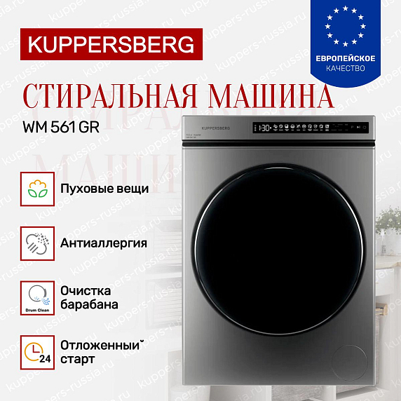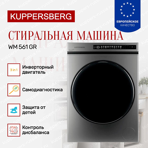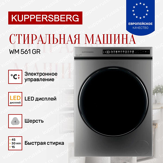 Стиральная машина Kuppersberg WM 561 GR — это воплощение современного подхода к уходу за одеждой, совмещающая в себе надежность, функциональность и элегантный дизайн. Корпус выполнен в стильном сером цвете, который гармонично впишется в интерьер любой ванной комнаты или прачечной, придавая помещению аккуратный и современный вид. Устройство имеет отдельностоящую конструкцию, что обеспечивает удобство установки и мобильность, позволяя разместить аппарат в любом удобном месте без необходимости встраивания. Габариты техники (высота 85 см, ширина 59.5 см, глубина 56.1 см) оптимальны для стандартных помещений, а диаметр загрузочного люка 36 см облегчает процесс закладывания и выгрузки белья.