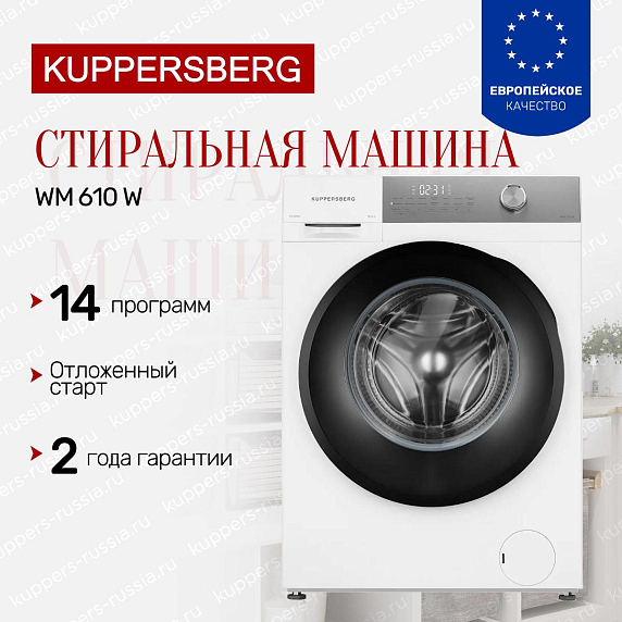 Стиральная машина Kuppersberg WM-610-W представляет собой высокопроизводительное оборудование, разработанное для больших семей и пользователей с активным образом жизни, где ключевыми критериями выступают вместительность, эксплуатационная надежность и скорость обработки белья. Отдельностоящая конструкция с фронтальным расположением загрузочного люка обеспечивает свободу размещения в помещении без необходимости встраивания в мебель. Модель оснащена современными технологиями стирки, интуитивным управлением и лаконичным внешним оформлением. Просторный барабан позволяет загружать до 10,5 килограмма сухого текстиля, включая крупногабаритные предметы, а отжим на скорости 1400 оборотов в минуту минимизирует остаточную влажность.