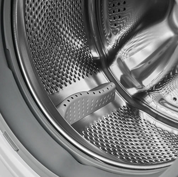 Отложенный старт позволяет запрограммировать время начала работы. Контроль дисбаланса — другая важная характеристика этой модели. Белье не скапливается в одном месте и не мнется. Есть защита от детей — вы можете заблокировать панель управления, чтобы малыши не изменили настройки. Электронная самодиагностика позволяет быстро выявить неисправность. Модель крайне экономно расходует электричество и относится к классу энергопотребления А+++. Класс стирки А присваивается приборам, которые максимально эффективно отстирывают любые пятна. Класс сушки В означает, что остаточная влажность белья не превышает 20%. Вещи очень быстро высохнут. Устройство работает тихо, его можно запускать ночью.