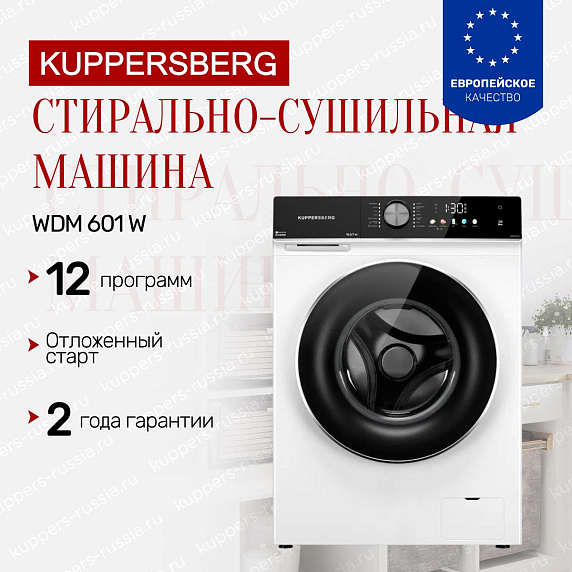 Стирально-сушильная машина Kuppersberg WDM 601 W — это современное решение для вашего дома, которое объединяет в себе функции стирки и сушки. Эта модель отличается элегантным дизайном и высокой функциональностью, что делает её идеальным выбором для тех, кто ценит комфорт и удобство в быту.