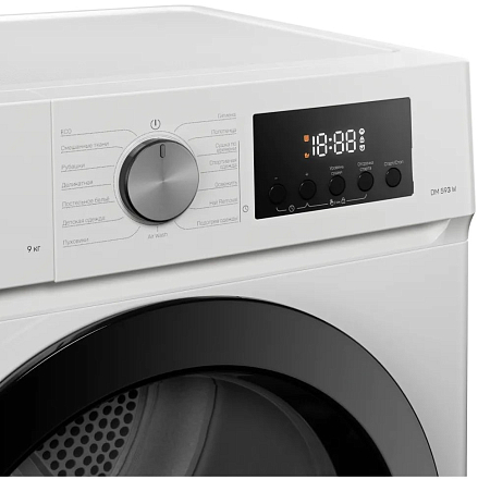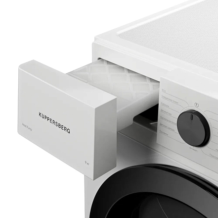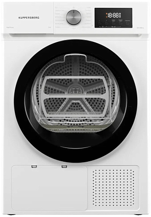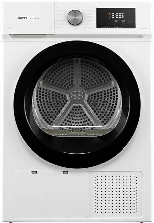 Сушильная машина Kuppersberg DM 593 W выполнена спокойном белом тоне, который подчёркивает универсальность модели и позволяет ей гармонично вписаться в интерьер любой прачечной или хозяйственной зоны. Компактные габариты — высота 85 см, ширина 59,5 см, глубина 61,5 см — обеспечивают удобство размещения в нише или отдельно стоя на подготовленной поверхности, не занимая лишнего пространства. Большой люк диаметром 370 мм облегчает загрузку и выгрузку вещей, а внутренняя подсветка барабана делает процесс контроля уровня высушенности простым даже при слабом освещении помещения. Корпус выполнен с акцентом на практичность и аккуратность линий, благодаря чему аппарат выглядит современно и аккуратно.