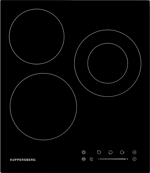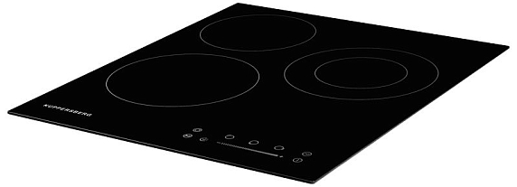 Габариты прибора составляют 5 см в высоту, 45 см в ширину и 52 см в глубину. Такие размеры позволяют легко интегрировать устройство в любую кухню, что позволяет максимально эффективно использовать пространство кухни, сохраняя при этом функциональность и эстетику. Электрическая модель оснащена тремя конфорками, одна из которых двухконтурная, что обеспечивает гибкость при приготовлении различных блюд. Имеет сенсорный слайдер (SliderTouch) для удобного управления.