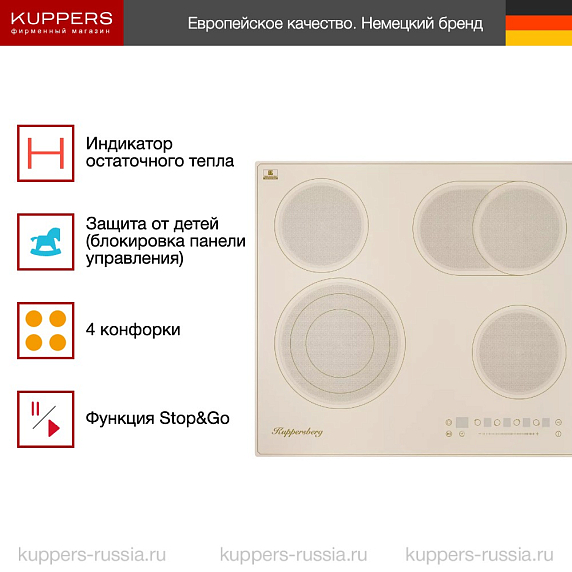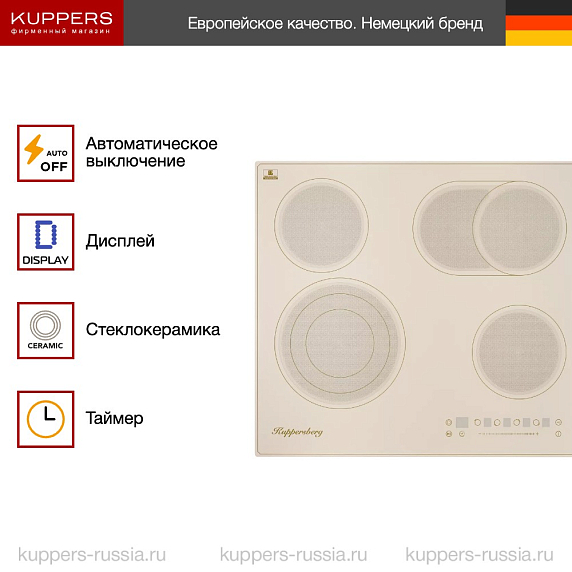 Торговая марка Kuppersberg уже 15 лет находится на рынке и входит в ТОП-10 производителей бытовой техники в России. По всему миру расположено более десяти заводов компании Куперсберг, на которых собирается техника. Немецкий подход к построению бизнеса позволил сохранить высокие стандарты сборки и срока службы и при этом сократить расходы на производство. Поэтому варочные поверхности — это надёжность по доступным ценам. Пользователь может выбрать наиболее подходящую к его дому модель: газовую, электрическую или индукционную. Все они имеют интересный дизайн, лишённый вычурности. При этом цветовая гамма содержит цвета, отражающие лаконичную палитру природы, свойственную странам Северной Европы.