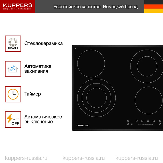 Торговая марка Kuppersberg уже 15 лет находится на рынке и входит в ТОП-10 производителей бытовой техники в России. По всему миру расположено более десяти заводов компании Куперсберг, на которых собирается техника. Немецкий подход к построению бизнеса позволил сохранить высокие стандарты сборки и срока службы и при этом сократить расходы на производство. Поэтому варочные поверхности — это надёжность по доступным ценам. Пользователь может выбрать наиболее подходящую к его дому модель: газовую, электрическую или индукционную. Все они имеют интересный дизайн, лишённый вычурности. При этом цветовая гамма содержит цвета, отражающие лаконичную палитру природы, свойственную странам Северной Европы.