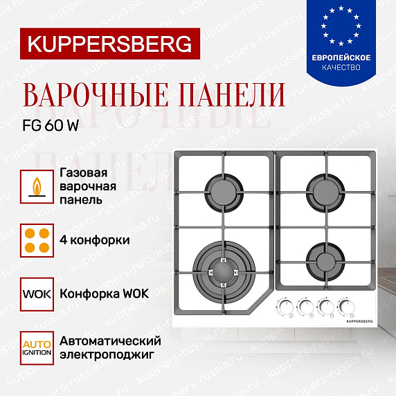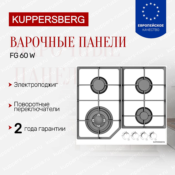 Газовая варочная панель Kuppersberg FG 60 W - элегантный модуль с классическим силуэтом в белом исполнении создан для тех, кто ценит компактность и удобство. Низкий профиль высотой 5.2 см сохраняет визуальную лёгкость рабочей зоны, а прямой край окантовки подчёркивает аккуратность интеграции в кухонный гарнитур. Конструкция «домино» позволяет комбинировать несколько блоков, формируя индивидуальную конфигурацию плоскости, либо использовать прибор как автономный элемент на ограниченной поверхности. Закалённое стекло панели придаёт отполированный внешний вид и облегчает уход: жир и остатки пищи удаляются мягкой губкой без риска потери эстетики. Белая фурнитура и однородный тон поверхности гармонируют с большинством отделочных решений, создавая спокойный фон для посуды и аксессуаров.