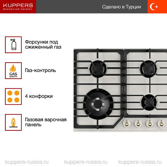 Газовая варочная панель Kuppersberg FG 601 W Silver