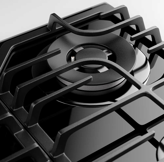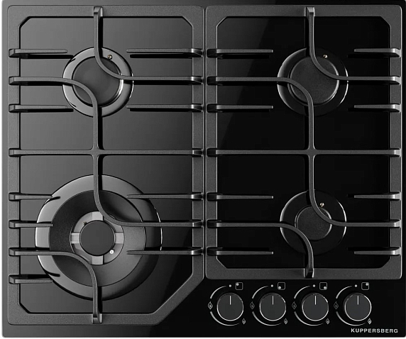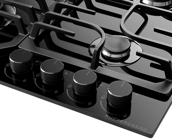 Газовая варочная панель Kuppersberg FG 63 B это конструкция в чёрном оттенке подчёркивает современный дизайн, делая поверхность одновременно утончённой и практичной. Закалённое стекло панели обеспечивает гладкий внешний вид и облегчает уход, а скошенный край с фасетом придаёт изделию дополнительную глубину и благородный блеск. Черная фурнитура гармонично сочетает внешнюю простоту и подчеркнутую строгую линию, превращая рабочую зону в стильный акцент интерьера. Материал решёток — чугун — выбирали за долговечность и устойчивость к высоким температурам, он надёжно фиксирует посуду и обеспечивает стабильный контакт дна с пламенем. Компоненты подобраны так, чтобы сочетать лёгкость визуального восприятия и практическую надёжность при повседневном использовании.
