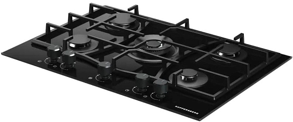 Тип: газовая, Общее количество конфорок: 5, Цвет: черный, Панель конфорок: закаленное стекло
