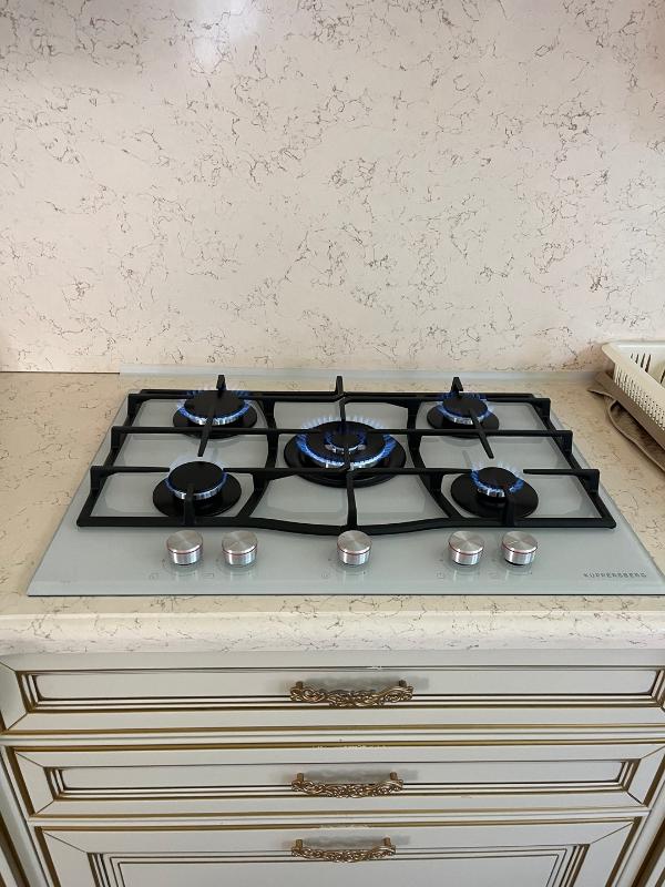 Покупала эту варочную панель, потому что хотела заменить старую плиту и упростить готовку для семьи. Установили её в выходные, и процесс прошёл быстро — всё включается поворотными переключателями, электроподжиг действительно экономит время утром. Первое, что оценили дети и муж, — мощная центральная конфорка: суп в большой кастрюле закипает быстрее, чем раньше. Для жарки по-азиатски использовала WOK-горелку — результат такой же, как в ресторане: быстро и равномерно. Решётки из чугуна прочные, кастрюли стоят устойчиво. Поверхность из закалённого стекла белого цвета легко протирать после готовки, пятна и брызги не остаются надолго. Металлическая окантовка с фасетом выглядит аккуратно и не царапается при обычном использовании. Наличие форсунок под сжиженный газ оказалось полезным, когда мы уезжали в домик на даче и переключались на баллон — всё работало без проблем. Газ-контроль успокаивает: если пламя случайно погасло, подача прекращается и это даёт чувство безопасности. Из бытовых историй: однажды принимала гостей и готовила несколько блюд одновременно — пять конфорок очень выручили. Накалилась энергия кухни, никто не толкался, все блюда успели податься горячими. Ещё понравилось, что фурнитура из нержавеющей стали не тускнеет со временем. Управление простое, не надо читать длинные инструкции, всё интуитивно понятно. Я довольна покупкой.