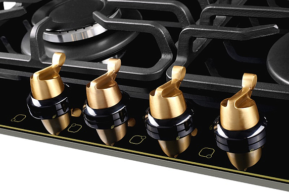 Газовая варочная панель Kuppersberg FQ 601 В — идеальная модель для вашей кухни, которая выполнена в черном дизайне с 4 конфорками. Это оборудование производится из высокопрочного закаленного стекла, которое выдерживает температуры до 45 градусов, не меняет фактуру и цвет, устойчиво к химическому воздействию, и дополняется прочными чугунными решетками. В сочетании с мощными держателями посуды и золотыми поворотными регуляторами поверхность выглядит профессионально.