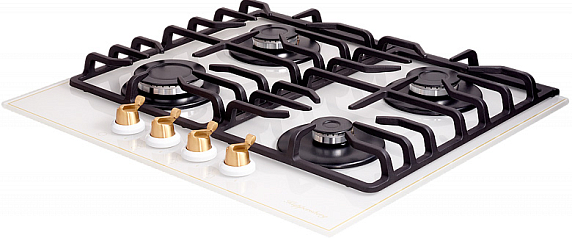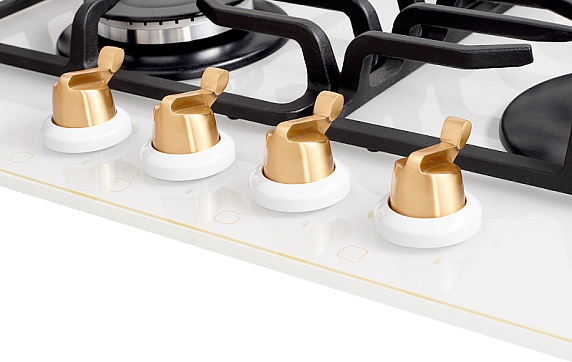 Газовая варочная панель Kuppersberg FQ 601 W представлена в элегантном белом дизайне с четырьмя конфорками. Это оборудование производится из высокопрочного закаленного стекла и дополняется прочными чугунными решетками. Закаленное стекло выдерживает температуры до 45 градусов, не меняет фактуру и цвет, устойчиво к химическому воздействию. В сочетании с мощными держателями посуды и золотыми поворотными регуляторами поверхность выглядит профессионально.