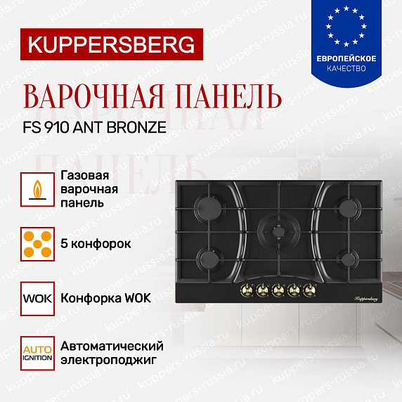 Газовая варочная панель Kuppersberg FS 910 ANT Bronze сочетает строгую геометрию и благородные акценты, предлагая современный взгляд на классику. Выполненная в оттенке антрацит с фурнитурой цвета бронзы, она привлекает внимание с первого взгляда, легко вписывается в интерьер и служит эффектным центром рабочей зоны. Прямой край окантовки подчеркивает лаконичную форму, а эмалированная панель обеспечивает однородную, матовую текстуру, приятную на ощупь и устойчивую к воздействию высоких температур. Чугунные решетки добавляют визуальной солидности и гарантируют надежную опору для посуды любых объемов, придавая образу завершённость и профессиональный характер.