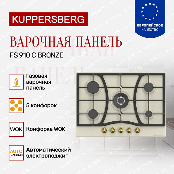 Газовая варочная панель Kuppersberg FS 910 C Bronze представляет собой практичное и эстетически выразительное оборудование для современных кухонь, объединяющее изысканный внешний вид, эксплуатационную надежность и расширенную функциональность. Ширина 86 сантиметров при низкопрофильной конструкции позволяет эффективно использовать рабочую поверхность для приготовления блюд любой сложности. Газовый нагрев обеспечивает быстрый прогрев и экономичность, а наличие электроподжига и жиклеров для сжиженного газа расширяет возможности применения. Сочетание бежевой эмали и бронзовой фурнитуры облегчает уход и сохраняет эстетические свойства. Поставка осуществляется через официальную дилерскую сеть, что подтверждает подлинность изделия и наличие гарантийных обязательств производителя.