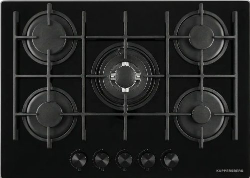 Газовая варочная панель Kuppersberg TG 72 B из коллекции «Современный дизайн» представляет собой сочетание лаконичности и профессиональных возможностей, предназначенное для тех, кто ценит удобство и эстетику на кухне. Черное закаленное стекло создает глубокий, зеркальный фон, который визуально расширяет пространство и делает прибор центром композиции. Окантовка отсутствует, что обеспечивает эффект бесшовной встраиваемости и облегчает уход — грязь не задерживается в стыках, а поверхность легко протирается специальной или мягкой тканью. Черная фурнитура выстроена в строгой цветовой гамме, подчеркивая современный характер и универсальность оформления, подходя как для минималистичных проектов, так и для элегантных интерьеров с яркими акцентами.