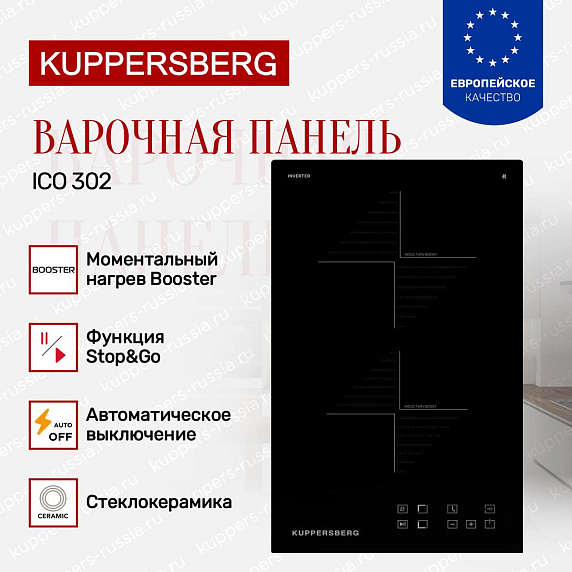 Индукционная варочная панель Kuppersberg ICO 302 представляет собой эргономичное и технологичное оборудование для ограниченных кухонных пространств, объединяющее лаконичное оформление, эксплуатационную надежность и расширенный функционал. Ширина 28,8 сантиметра в исполнении «Домино» позволяет продуктивно использовать доступную площадь, сохраняя возможности двухконфорочного устройства с сенсорным регулятором SliderTouch, функциями Booster, Stop & Go, распознавания посуды и инверторным принципом нагрева. Индукционная технология обеспечивает оперативное приготовление и экономию электроэнергии. Стеклокерамическая плоскость со скошенной гранью упрощает очистку и сохраняет эстетические свойства. Поставка осуществляется через официальную дилерскую сеть, что подтверждает подлинность изделия и наличие гарантийных обязательств производителя.