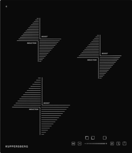 - Три индукционные конфорки с функцией Booster обеспечивают быстрое и равномерное нагревание