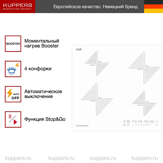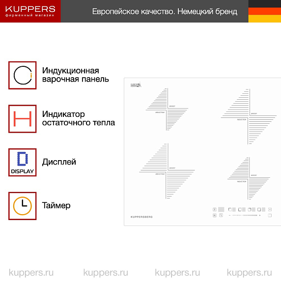 Торговая марка Kuppersberg уже 15 лет находится на рынке и входит в ТОП-10 производителей бытовой техники в России. По всему миру расположено более десяти заводов компании Куперсберг, на которых собирается техника. Немецкий подход к построению бизнеса позволил сохранить высокие стандарты сборки и срока службы и при этом сократить расходы на производство. Поэтому варочные поверхности — это надёжность по доступным ценам. Пользователь может выбрать наиболее подходящую к его дому модель: газовую, электрическую или индукционную. Все они имеют интересный дизайн, лишённый вычурности. При этом цветовая гамма содержит цвета, отражающие лаконичную палитру природы, свойственную странам Северной Европы.