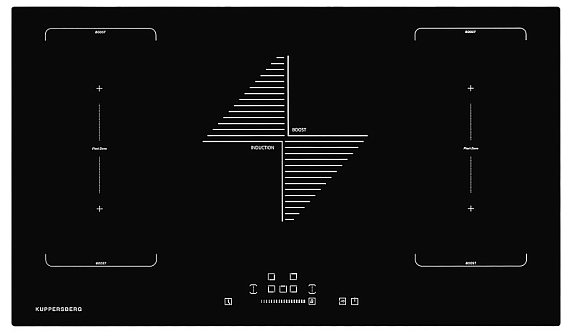 Панель оснащена пятью независимыми зонами нагрева, что открывает широкие возможности как для повседневной готовки, так и для создания кулинарных шедевров. Центральная зона обладает мощностью 2,2 кВт, а правая и левая зоны — по 3 кВт каждая, что особенно полезно для быстрого кипячения воды или интенсивного обжаривания. Ближние и дальние зоны рассчитаны на 1,8 кВт, что подходит для тушения или разогрева. Устройство предлагает девять уровней мощности, которые легко регулируются с помощью сенсорного слайдера SliderTouch — достаточно легкого касания для точной настройки. Дисплей позволяет всегда видеть выбранные параметры и контролировать процесс приготовления.