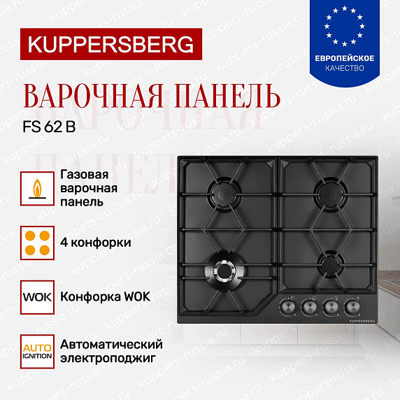 Четыре конфорки адаптированы под различные сценарии приготовления: WOK-зона мощностью до 3,8 кВт идеально подходит для интенсивного обжаривания, а малая горелка обеспечивает деликатный подогрев. Две дополнительные конфорки с равномерным распределением мощности по 2 кВт позволяют одновременно готовить несколько блюд, экономя время. Электроподжиг доступен для всех зон, что делает использование максимально удобным — достаточно повернуть переключатель. Система газ-контроля гарантирует безопасность, автоматически прекращая подачу топлива при затухании пламени. В комплект входят форсунки для сжиженного газа, что делает панель универсальной для разных условий подключения.