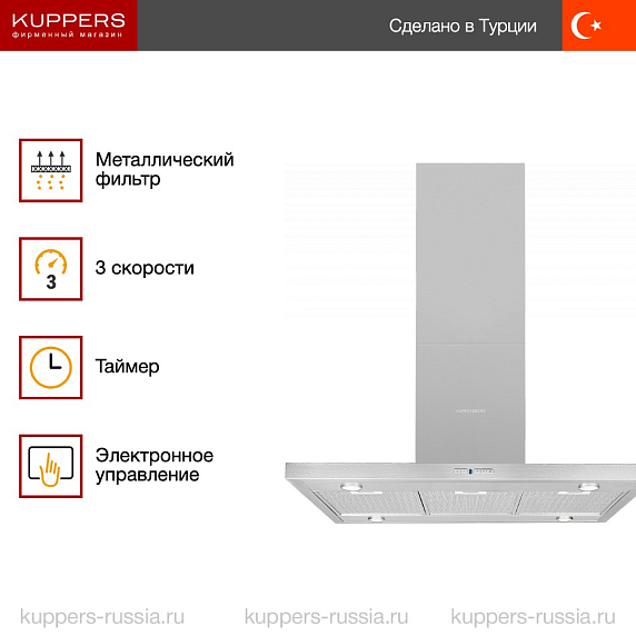 Эргономика вытяжки продумана до мелочей: крупная рабочая поверхность, простое обслуживание фильтров и интуитивно понятное управление. Благодаря универсальному дизайну в оттенке нержавеющей стали устройство легко впишется в любой интерьер, будь то минимализм, хай-тек или классика. Такая вытяжка отлично подойдёт для просторных кухонь-гостиных, где важно сохранить чистоту воздуха и подчеркнуть индивидуальность пространства.