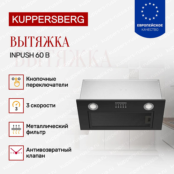 Встраиваемая вытяжка Kuppersberg Inpush 60 B представляет собой практичное и надежное оборудование для небольших и средних кухонь, объединяющее минималистичное оформление, достаточную производительность и простоту управления. Возможность работы в режимах отвода и рециркуляции, три скорости вентиляции, механическое управление с кнопочными переключателями, а также экономичное энергопотребление делают данную модель функциональным решением для ежедневного применения. Компактные габариты позволяют легко интегрировать устройство в подвесной шкаф, сохраняя эстетику кухонного пространства. Поставка осуществляется через официальную дилерскую сеть, что подтверждает подлинность изделия и наличие гарантийных обязательств производителя.