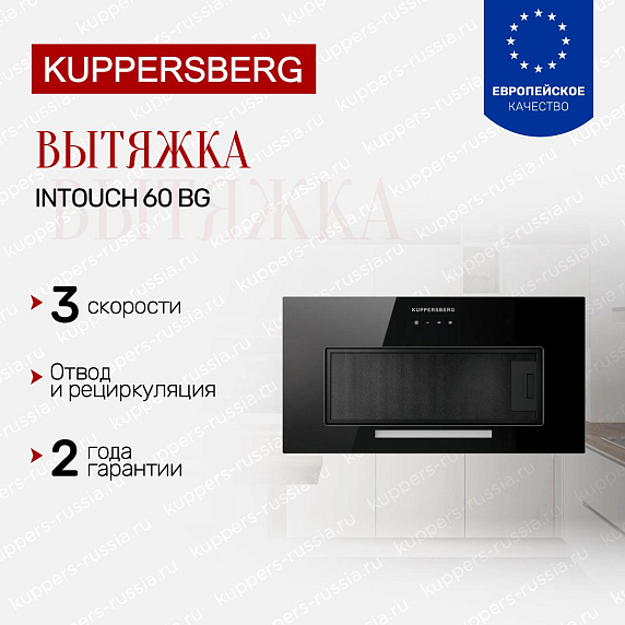 Вытяжка Kuppersberg Intouch 60 BG — это идеальное решение для современной кухни, объединяющее в себе стильный дизайн и функциональность. Благодаря черному цвету и минималистичным формам она гармонично впишется в интерьер любого помещения, подчеркивая его изысканность и продуманность. Встраиваемый тип и монтаж в подвесной шкаф позволяют сэкономить пространство, сохраняя при этом высокий уровень производительности. Компактные размеры — высота 19,55 см, ширина 54 см и глубина 27,8 см — обеспечивают удобство установки даже в ограниченных по площади нишах, габариты которых составляют 19,2×48,4×24,8 см.