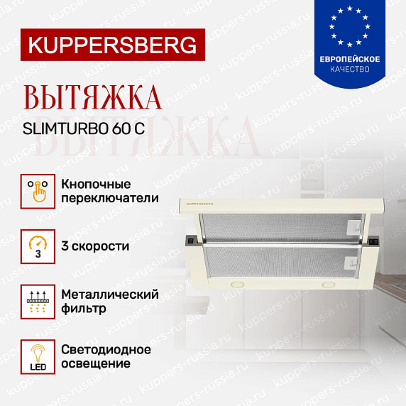 Встраиваемая вытяжка Kuppersberg Slimturbo 60 C представляет собой практичное и надежное оборудование для современных кухонь, объединяющее компактное оформление, высокую производительность и простоту управления. Возможность работы в режимах отвода и рециркуляции, три скорости вентиляции, механическое управление с кнопочными переключателями, а также удобство обслуживания делают данную модель функциональным решением для ежедневного применения. Компактные габариты позволяют легко интегрировать устройство в стандартный подвесной шкаф, сохраняя эстетику кухонного пространства. Поставка осуществляется через официальную дилерскую сеть, что подтверждает подлинность изделия и наличие гарантийных обязательств производителя.