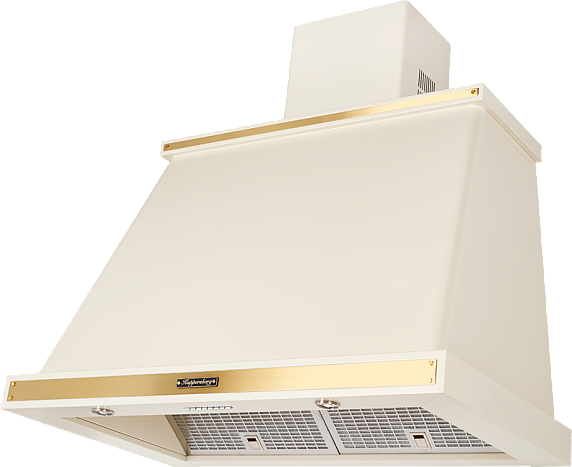 Конструкция вытяжки основана на комбинации прочных и долговечных материалов. Основной корпус изготовлен из высококачественного металла с порошковым покрытием, устойчивым к царапинам, влаге и жиру. Бронзовые элементы — это не просто краска, а специальное декоративное напыление, имитирующее благородный металл и сохраняющее внешний вид даже при интенсивной эксплуатации. Стеклянные или пластиковые вставки в данной модели отсутствуют, что повышает надёжность и упрощает уход. Съёмные жироулавливающие фильтры выполнены из алюминиевой сетки — они легко моются в посудомоечной машине и многократно используются без потери эффективности.