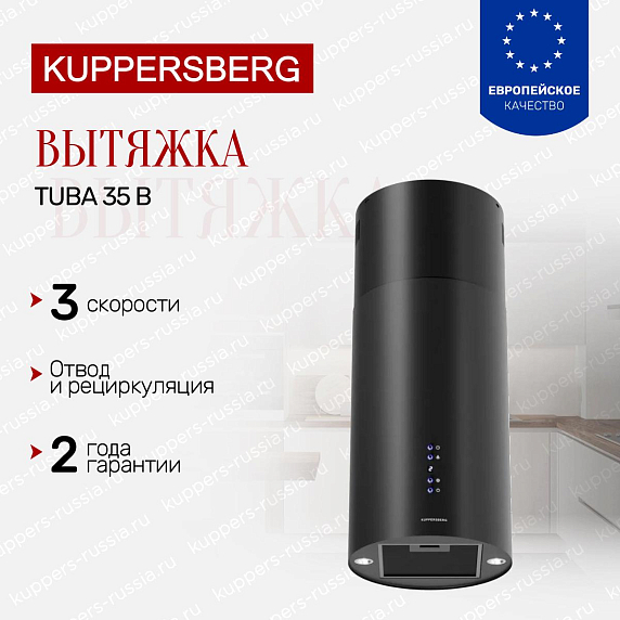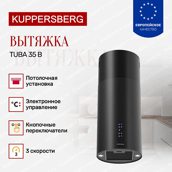 Вытяжка Kuppersberg Tuba 35 B — это островной потолочный прибор, который станет центральным элементом вашей кухни, объединяя в себе современный дизайн и функциональность высокого уровня. Черный цвет корпуса придает элегантность и универсальность, позволяя гармонично вписаться в интерьер любого стиля, будь то минимализм, хай-тек или классика с современными акцентами. Благодаря строго продуманным геометрическим формам и компактным размерам (ширина и глубина по 35,1 см), выглядит изысканно и не перегружает пространство, сохраняя ощущение легкости и воздушности в помещении.