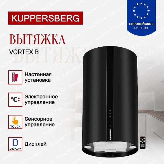 Вытяжка Kuppersberg VORTEX B представляет собой стильное решение для современной кухни, объединяющее элегантную цилиндрическую форму и продуманную функциональность. Компактные габариты и оптимальная глубина обеспечивают эффективное перекрытие рабочей зоны, а универсальные режимы работы позволяют как подключить устройство к существующему воздуховоду, так и использовать его в рециркуляционном варианте. Цилиндрическая форма при настенном монтаже выгодно подчеркивает современный интерьер кухни, а продуманная высота и параметры делают установку простой и аккуратной. Инновационные инженерные решения направлены на высокую производительность при умеренном уровне шума, что особенно важно для открытых планировок и семейных завтраков.
