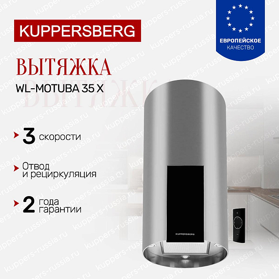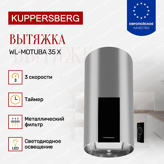 Вытяжка Kuppersberg WL MOTUBA 35 X представляет собой современное решение для кухни, сочетающее в себе стильный дизайн и высокую функциональность. Ее цилиндрическая форма и потолочный монтаж придают интерьеру изысканность и легкость, позволяя гармонично вписаться в любой стиль, будь то минимализм, хай-тек или классика. Корпус из нержавеющей стали не только подчеркивает элегантность, но и обеспечивает долговечность и простоту ухода, что особенно важно для техники, используемой ежедневно. Светодиодное освещение с двумя лампами мощностью по 1 Вт равномерно освещает рабочую поверхность, создавая комфортные условия для приготовления пищи и подчеркивая эстетическую привлекательность устройства.