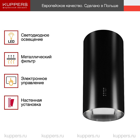 Вытяжка Купперсберг WL TUBA B — это сбалансированное решение для современной кухни, где важны и внешний вид, и надёжность.