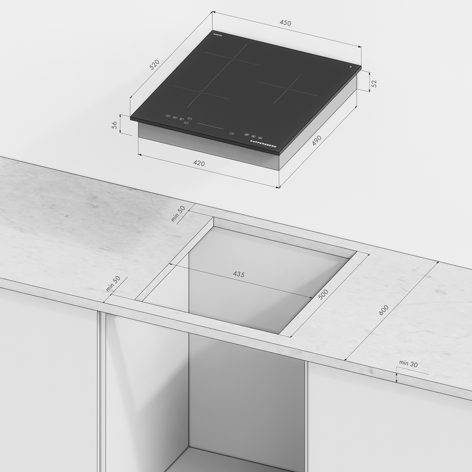 Схема встраивания для варочной панели Kuppersberg ICI 412