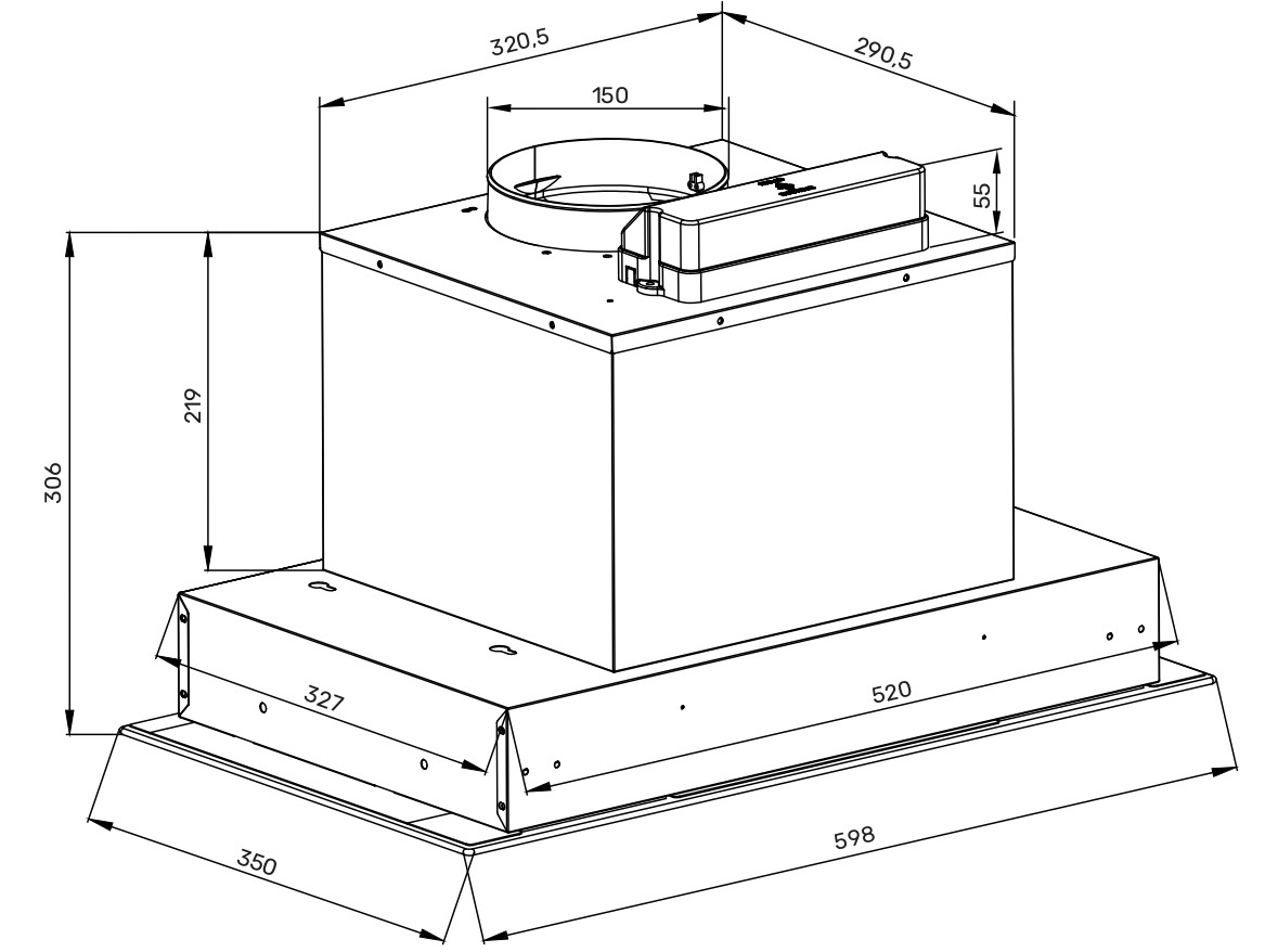 Схема встраивания для кухонной вытяжки Kuppersberg INFLAT 60 B