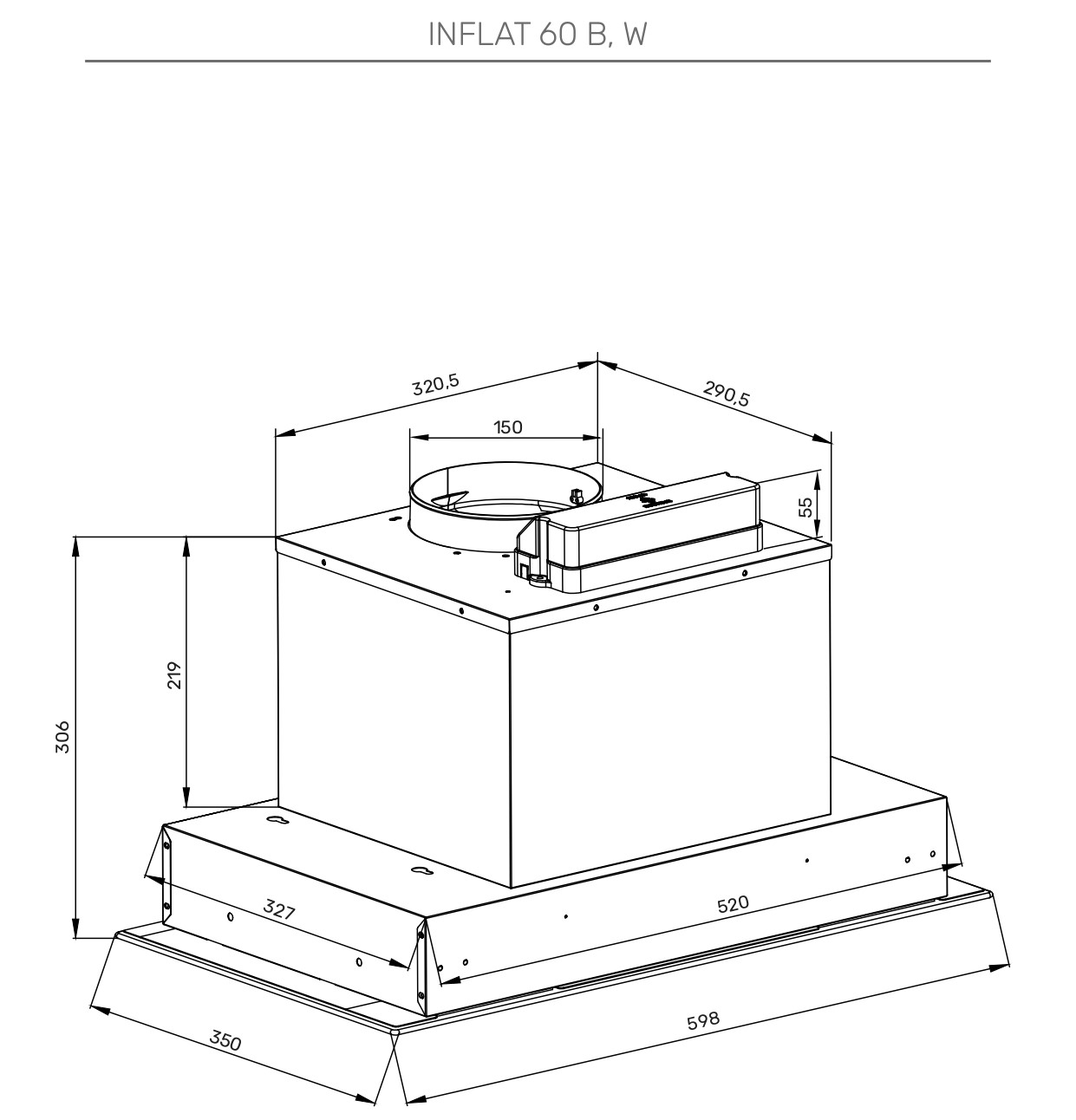 Схема встраивания для кухонной вытяжки Kuppersberg INFLAT 60 W