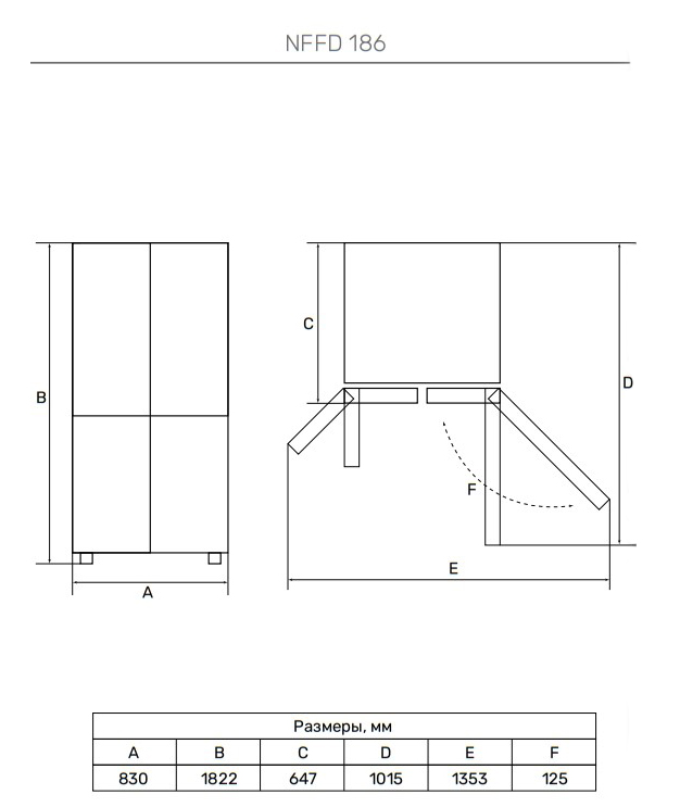 Схема встраивания для холодильника Kuppersberg NFFD 186 DX
