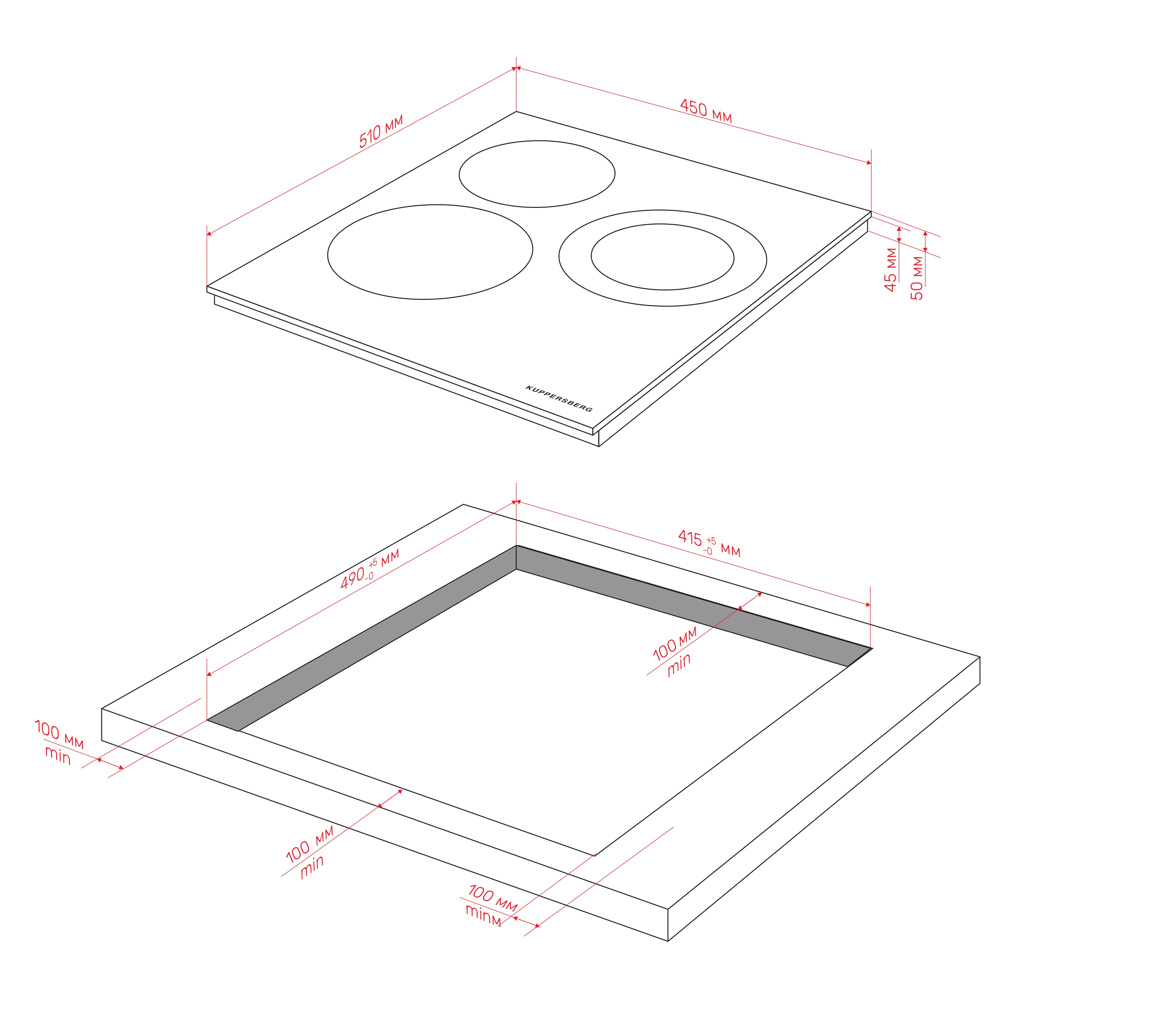 Схема встраивания для варочной панели Kuppersberg ECO 400