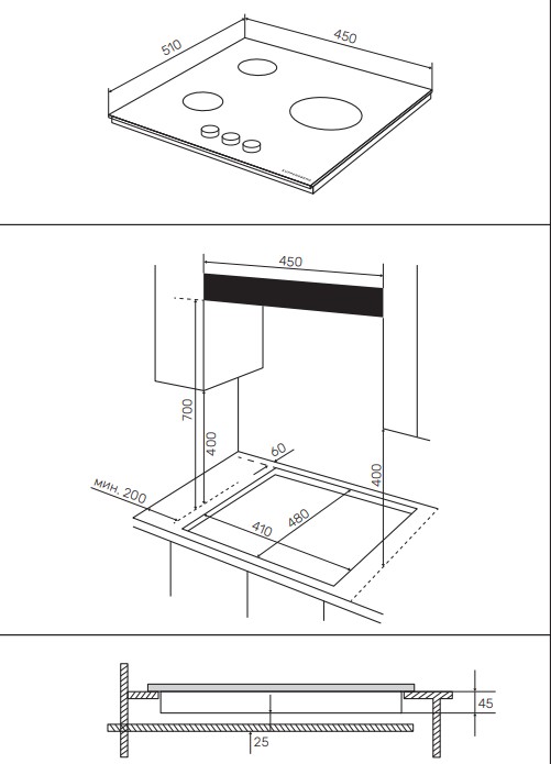 Схема встраивания для варочной панели Kuppersberg FG 41 B