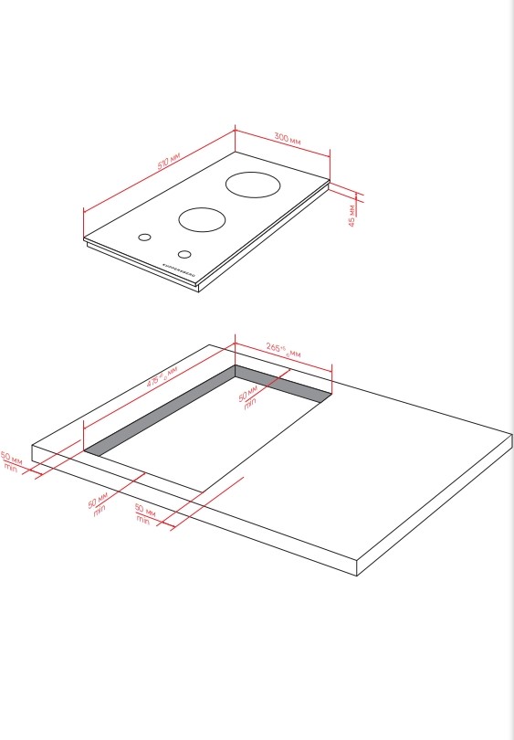 Схема встраивания для варочной панели Kuppersberg FG 30 B