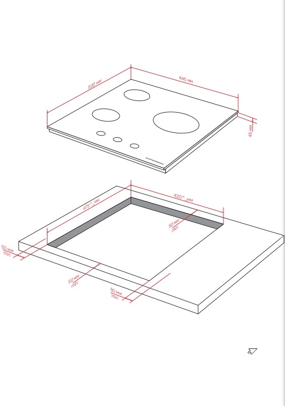 Схема встраивания для варочной панели Kuppersberg FS 40 B