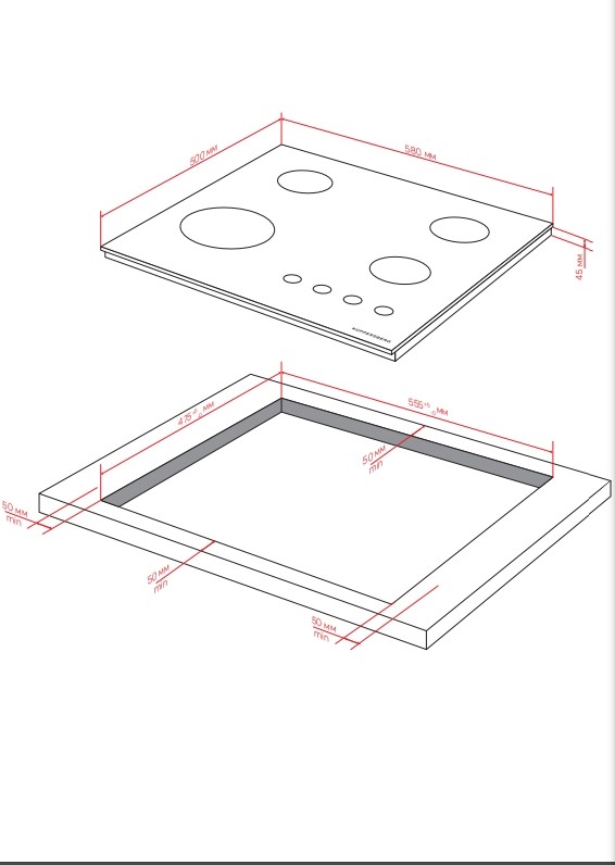 Схема встраивания для варочной панели Kuppersberg FS 60 B