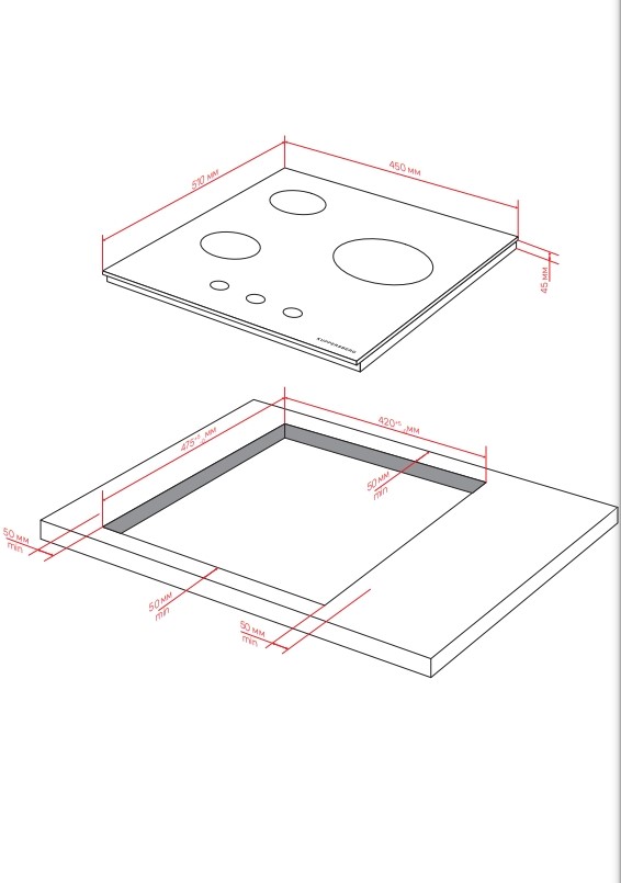 Схема встраивания для варочной панели Kuppersberg FG 40 B